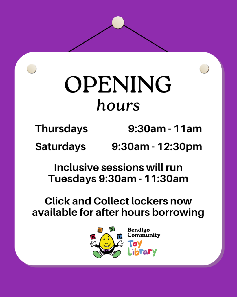 Bendigo Community Toy Library is a non-profit organisation run by its members.